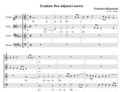 A collection of 4 four part motets by Erbach, Tresti, Bianciardi and Hassler.