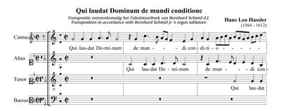 These motets have been arranged for the organ by Bernhard Schmid Jr. (1567 – 1625) for his Organ Tablature (1607).