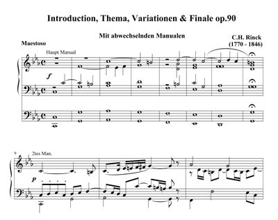 Christian Heinrich Rinck Introduction, theme, 9 variations and finale (fugue) on a 18th century popular song known as "Ah, vous dirai-je maman". For organ with 2 manuals and pedal. With registration instructions by the composer.