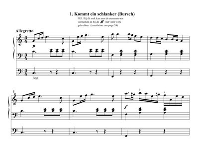 Die Arietta und die Cavatine werden auf einer Orgel mit zwei Manualen, möglichst mit Pedal, gespielt. "Trübe Augen" ist für ein Manual ohne Pedal geeignet.