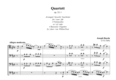 Het gehele strijkkwartet, bewerkt voor 4 cello's of 4 fagotten